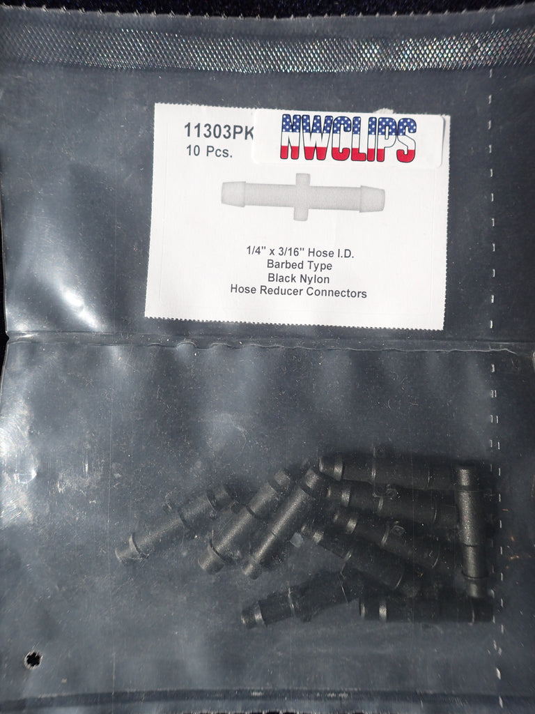 8675-11303 Black Nylon Straight Hose Reducer 1/4" x 3/16" Hose ID 10ct