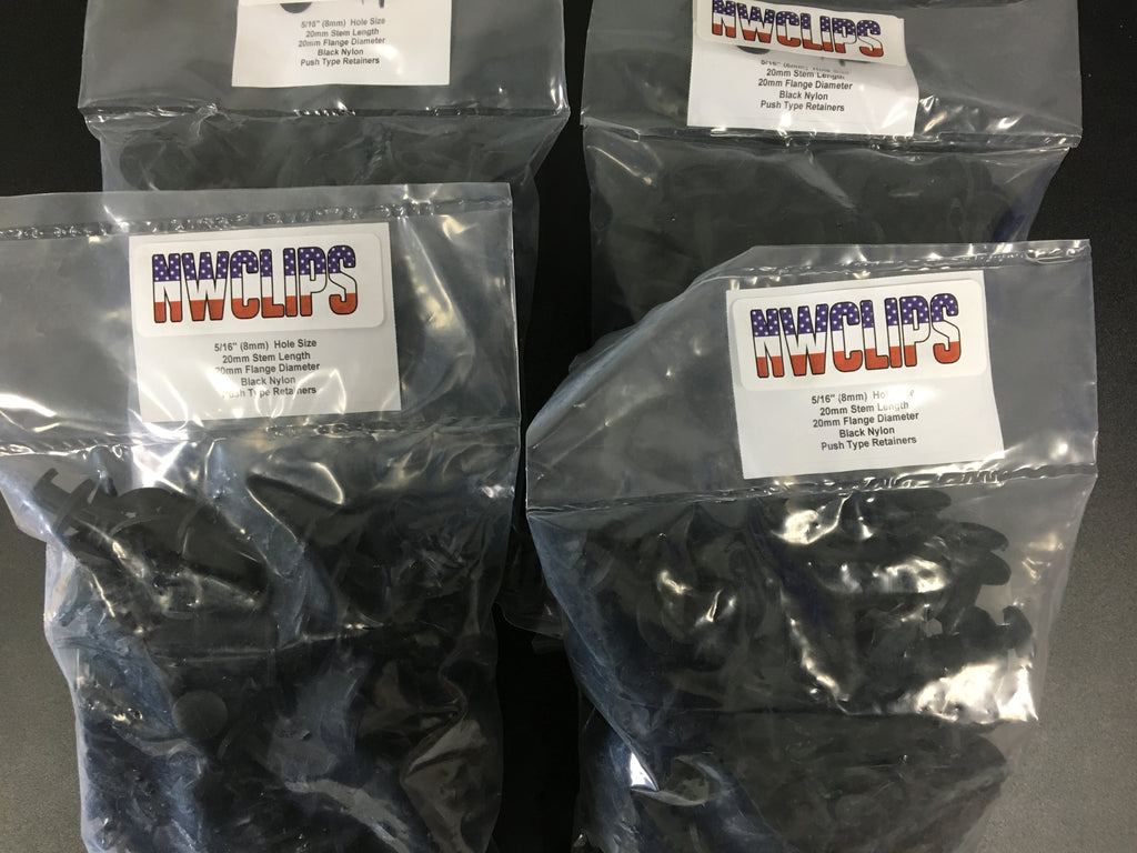 C40x100 - Chrysler, Ford, GM & VW Bumper & Fender Black Nylon Push Clips